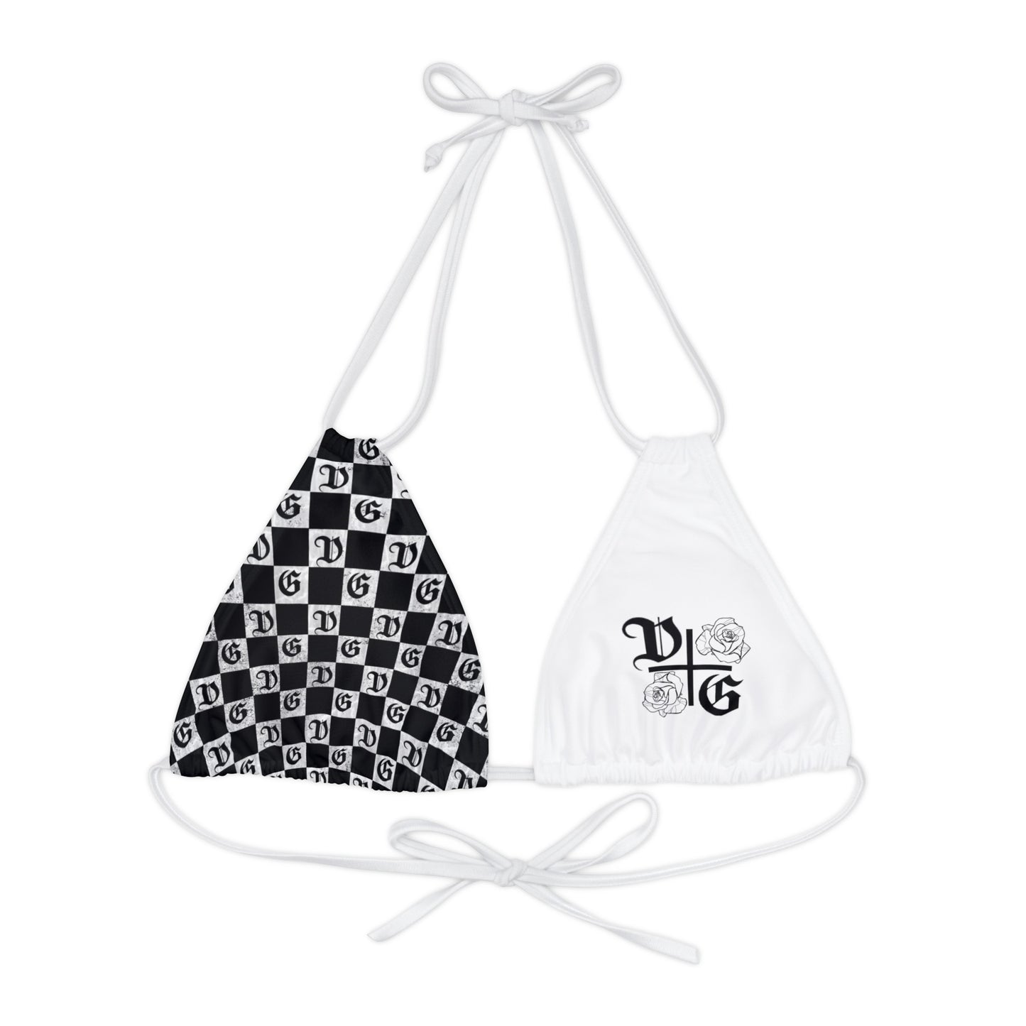"Damnaged Checkers" Strappy Triangle Bikini Top
